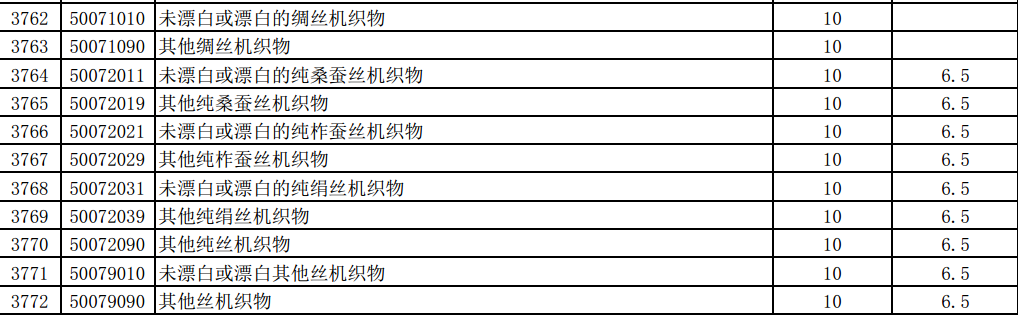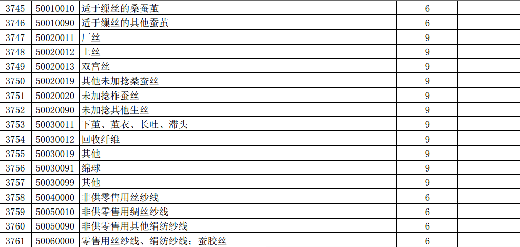 涉及繭絲綢商品如下: