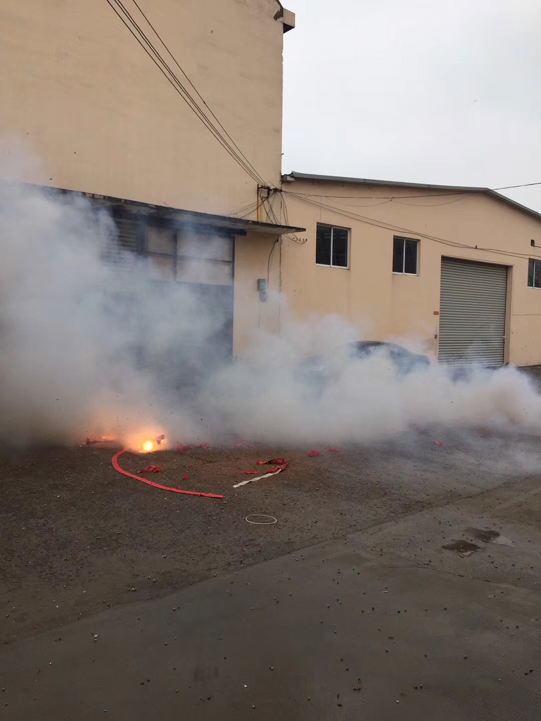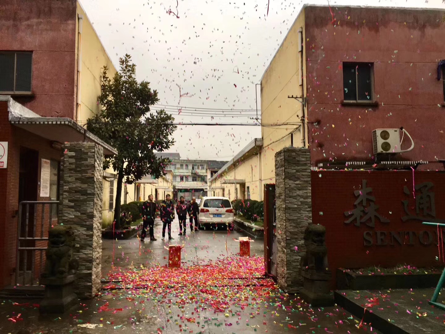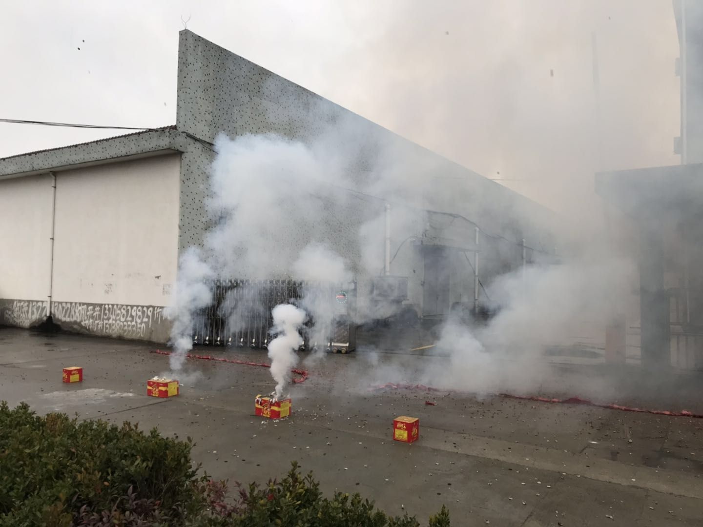 由于禁燃鞭炮,湖州森通絲織公司以放禮花的形式慶祝開工大吉。