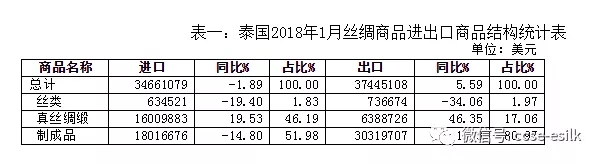 據(jù)泰國海關(guān)統(tǒng)計(jì),1月絲綢商品貿(mào)易額為7210.62萬美元,環(huán)比增長26.9%,同比增長1.86%。其中,進(jìn)口額為3466.11萬美元,環(huán)比增長30.63%,同比下降1.89%;出口額為3744.51萬美元,環(huán)比增長23.63%,同比增長5.59%。