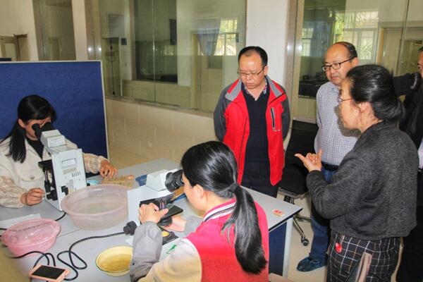 考察蠶種質(zhì)量檢驗(yàn)檢疫站實(shí)驗(yàn)室