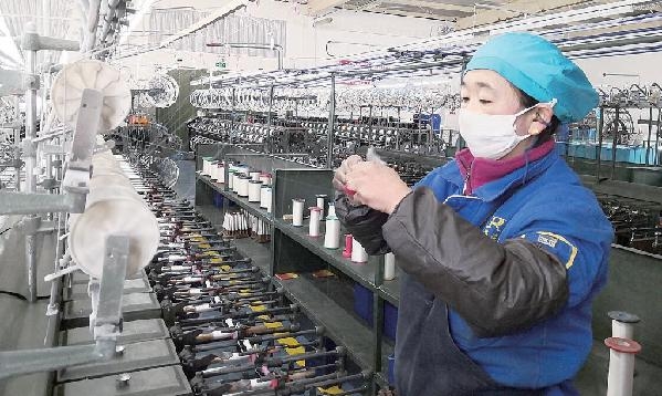 “一名紡織工人可同時操作8臺捻絲機,技藝熟練的紡織工能夠操作12臺?!?3月14日,記者走進經(jīng)緯車間,看到這里擺放著36臺捻絲機,每一臺捻絲機整齊劃一地將一根根蠶絲整理之后,穿到梭子上。車間內(nèi),為數(shù)不多的紡織工來回穿梭在捻絲機旁,檢查機器上是否有斷線。“車間內(nèi)實現(xiàn)了紡織自動化,捻絲機替代了原來的手工捻絲,減輕了紡織工的勞動強度?!?青海德瑞紡織品進出口有限公司副總經(jīng)理劉繼軍介紹,與經(jīng)緯車間隔路相對的是織造間,從里面織出來的白坯經(jīng)過檢驗、分等級,最終運往杭州印染成成品。
