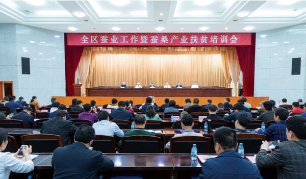 會(huì)上,南寧、柳州、來(lái)賓、河池、百色、宜州區(qū)、平果縣7個(gè)市縣(區(qū))分別作典型經(jīng)驗(yàn)交流。廣西蠶業(yè)技術(shù)推廣總站李標(biāo)站長(zhǎng)對(duì)2018年全區(qū)蠶桑工作成效作了總結(jié),對(duì)推進(jìn)2019年蠶桑產(chǎn)業(yè)發(fā)展的各項(xiàng)工作作了部署。2018年全區(qū)桑園面積311.43萬(wàn)畝、蠶繭產(chǎn)量40.44萬(wàn)噸,蠶農(nóng)售繭收入188.73億元,其中蠶繭產(chǎn)量連續(xù)14年位居全國(guó)第一,占全國(guó)比例進(jìn)一步擴(kuò)大,我區(qū)已經(jīng)成為全國(guó)最大的原料繭生產(chǎn)和生絲加工基地。目前,全區(qū)蠶桑生產(chǎn)覆蓋73個(gè)縣、612個(gè)鄉(xiāng)鎮(zhèn)、5332個(gè)村、82.4萬(wàn)農(nóng)戶,戶均售繭收入1.96萬(wàn)元,蠶桑產(chǎn)業(yè)已經(jīng)成為很多地區(qū)農(nóng)民增收農(nóng)業(yè)增效的優(yōu)勢(shì)產(chǎn)業(yè)。李標(biāo)站長(zhǎng)指出2019年要著重抓好幾個(gè)重點(diǎn)工作:一是抓好桑蠶良種“三生產(chǎn)”;二是抓好蠶種管理“三步驟”;三是抓好面上生產(chǎn)“三個(gè)服務(wù)”;四是抓好“三個(gè)示范”建設(shè);五是抓好產(chǎn)業(yè)扶貧“三項(xiàng)工作”;六是抓好蠶??萍肌叭齻€(gè)創(chuàng)新”;七是抓好蠶桑多元化應(yīng)用開發(fā)。