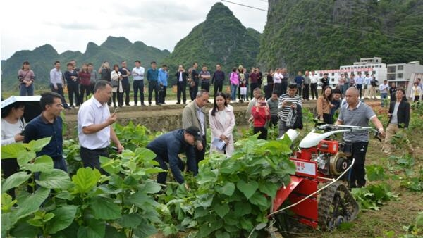 會(huì)議組織與會(huì)人員到廣西平果時(shí)宜農(nóng)業(yè)開發(fā)有限公司示范基地、坡造鎮(zhèn)種桑養(yǎng)蠶脫貧奔康產(chǎn)業(yè)園、廣西平果縣惠民蠶業(yè)科技有限責(zé)任公司示范基地進(jìn)行條桑機(jī)收獲示范、省力化機(jī)械展示等扶貧現(xiàn)場(chǎng)培訓(xùn)。