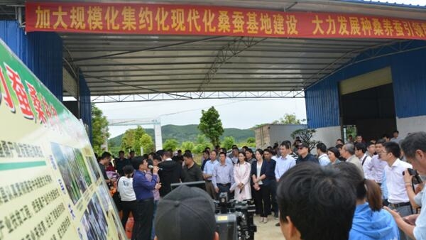 在坡造鎮(zhèn)種桑養(yǎng)蠶脫貧奔康產(chǎn)業(yè)園學(xué)習(xí)