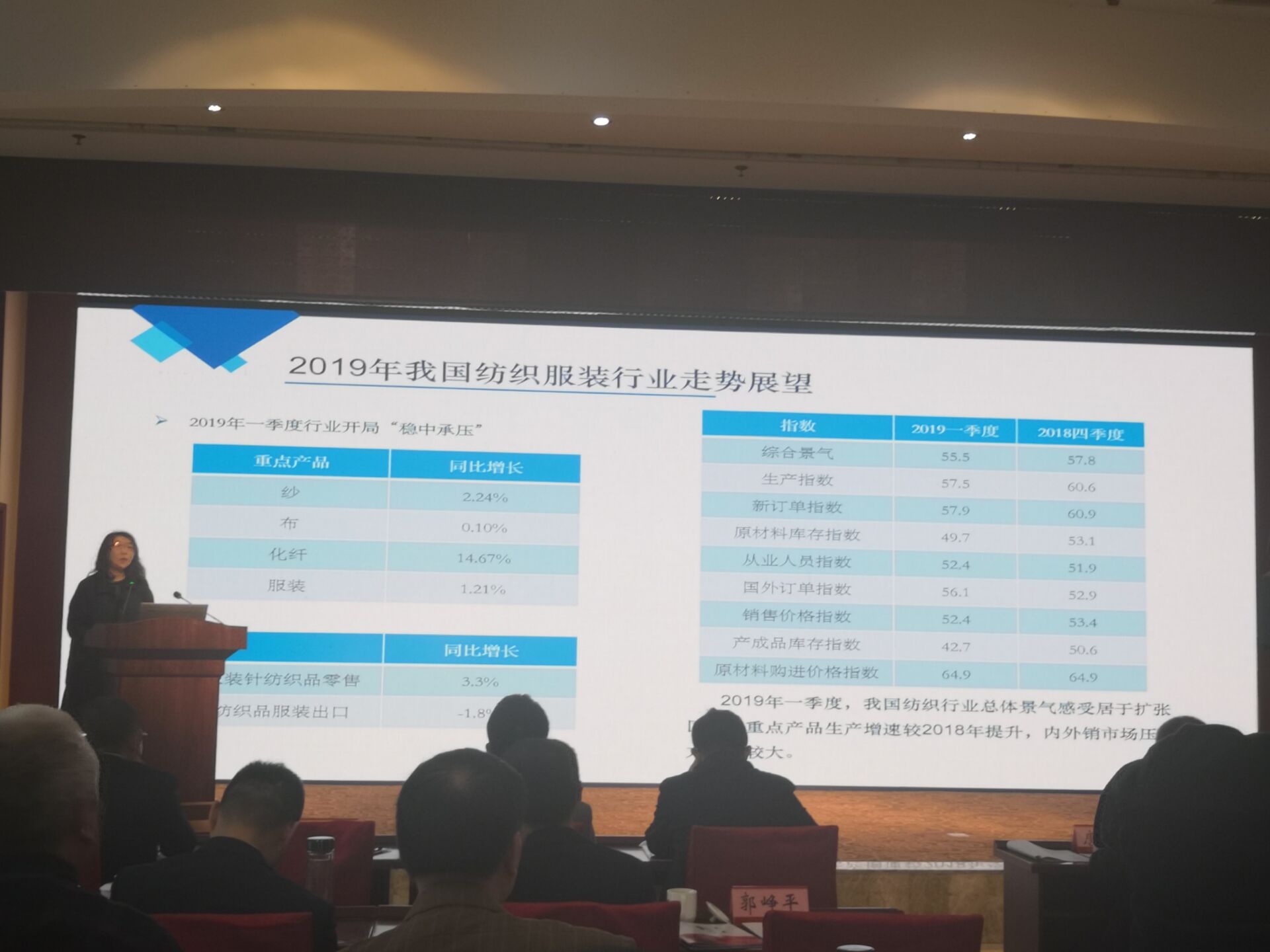 中國(guó)紡織工業(yè)聯(lián)合會(huì)產(chǎn)業(yè)部副主任劉欣介紹2019年紡織行業(yè)經(jīng)濟(jì)形勢(shì)