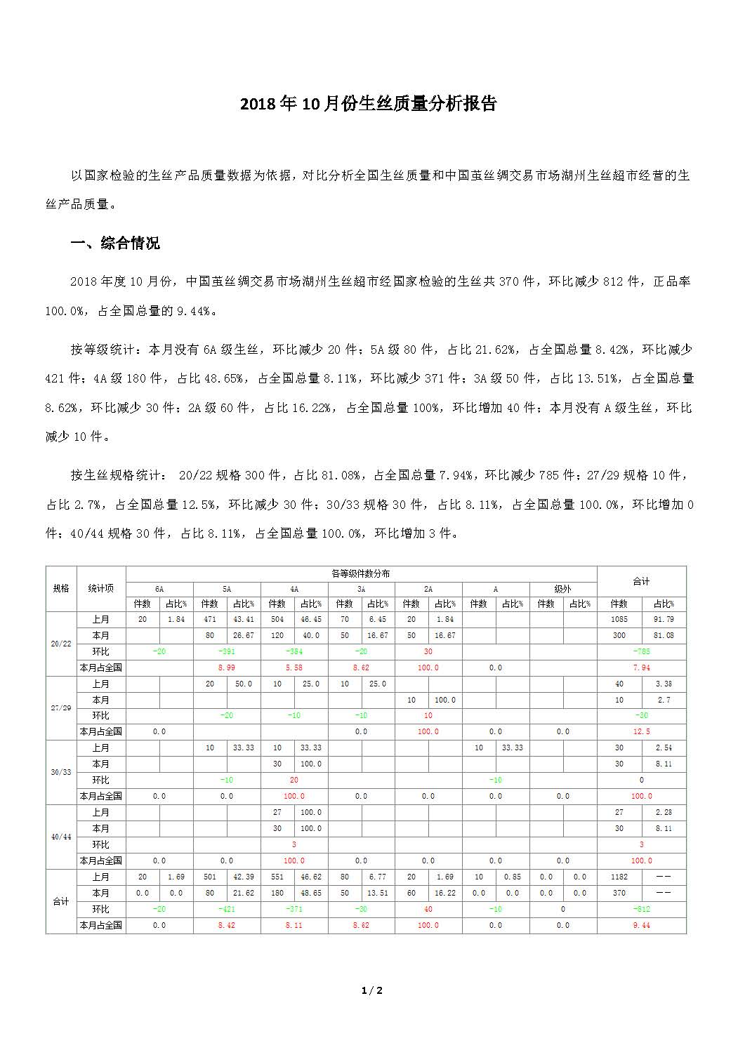 2018年10月份生絲質(zhì)量分析報(bào)告