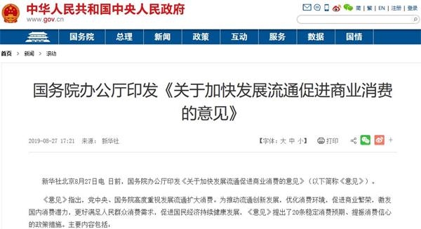 國(guó)務(wù)院8月27日發(fā)布了《關(guān)于加快發(fā)展流通促進(jìn)商業(yè)消費(fèi)的意見(jiàn)》(簡(jiǎn)稱《意見(jiàn)》),提出20條提振消費(fèi)信心措施,包括逐步放寬或取消汽車限購(gòu),支持商品以舊換新,擴(kuò)大成品油市場(chǎng)準(zhǔn)入,鼓勵(lì)金融機(jī)構(gòu)創(chuàng)新消費(fèi)信貸產(chǎn)品和服務(wù),加大對(duì)新消費(fèi)等金融支持等,針對(duì)流通消費(fèi)領(lǐng)域存在的一些瓶頸和短板進(jìn)行了完善,并進(jìn)行了部門分工,培育消費(fèi)熱點(diǎn)。