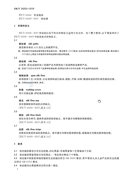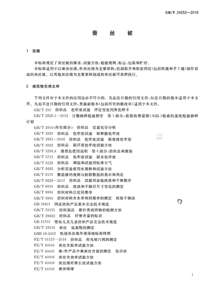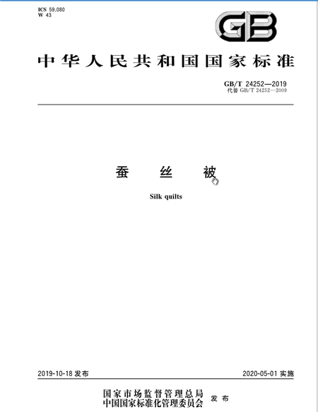 蠶絲被國家標(biāo)準(zhǔn)GB/T 24252-2019
