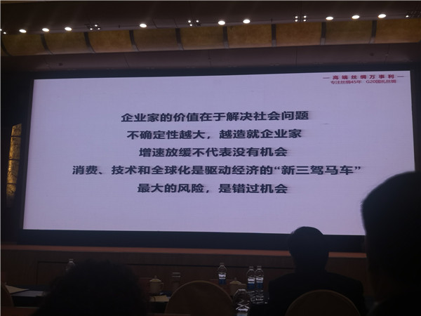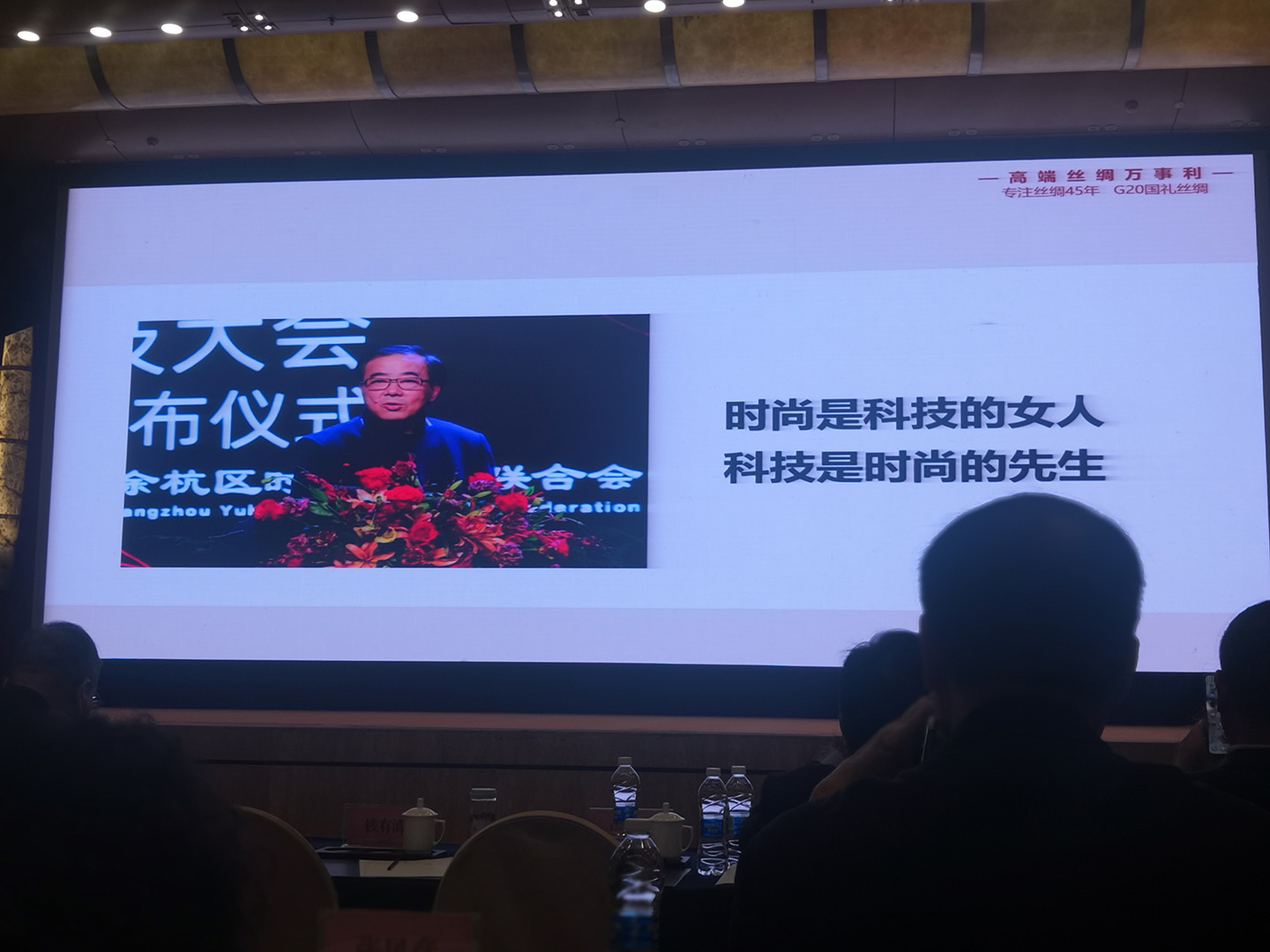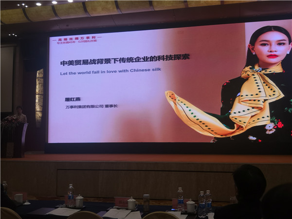 中國絲綢協(xié)會副會長、萬事利集團有限公司董事長屠紅燕發(fā)表題為《中美貿(mào)易戰(zhàn)背景下傳統(tǒng)企業(yè)的科技探索》的演講