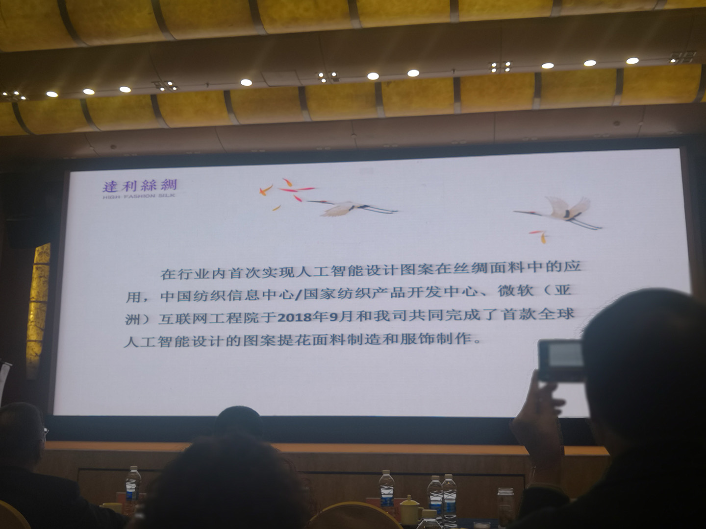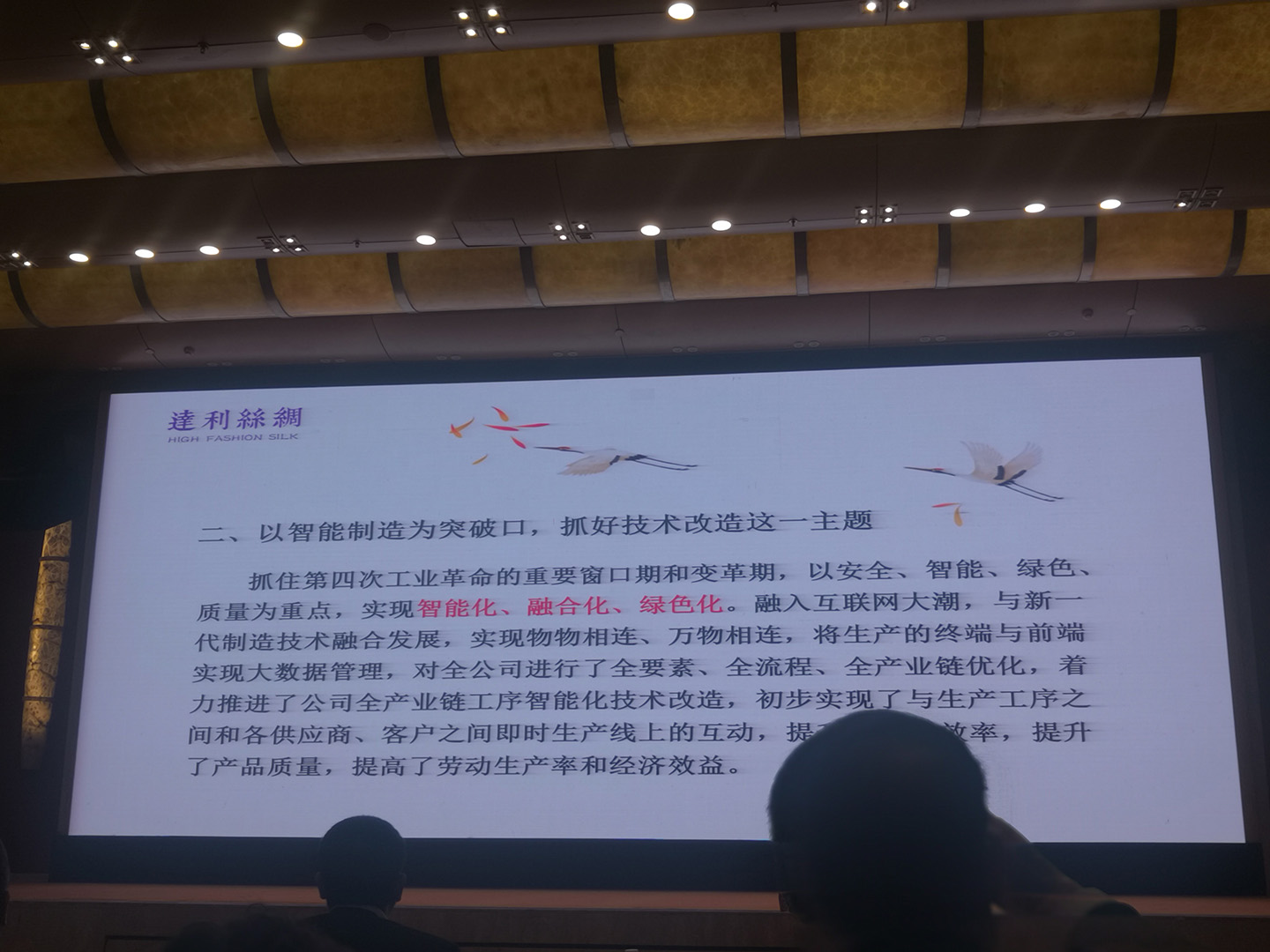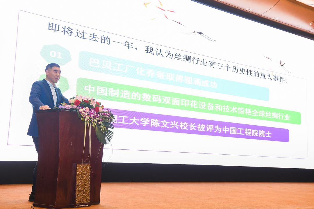 林董認(rèn)為在即將過去的2019年,絲綢行業(yè)有三個(gè)歷史性的重大事件:巴貝工廠化養(yǎng)蠶取得圓滿成功,中國(guó)制造的數(shù)碼雙面印花設(shè)備和技術(shù)驚艷全球絲綢行業(yè),浙江理工大學(xué)陳文興校長(zhǎng)被評(píng)為中國(guó)工程院院士。他介紹了達(dá)利發(fā)展情況和開展自主創(chuàng)新、智能制造、5G技術(shù)應(yīng)用、綠色制造等方面展開工作。制造品牌和消費(fèi)品牌是兩個(gè)不同概念,中國(guó)已經(jīng)從絲綢大國(guó)轉(zhuǎn)變?yōu)榻z綢強(qiáng)國(guó)。只要經(jīng)過新舊動(dòng)能轉(zhuǎn)換,傳統(tǒng)絲綢行業(yè)會(huì)成為永遠(yuǎn)的時(shí)尚產(chǎn)業(yè)。林董認(rèn)為絲價(jià)在這個(gè)水平是正常的,希望保持絲價(jià)的相對(duì)穩(wěn)定性。