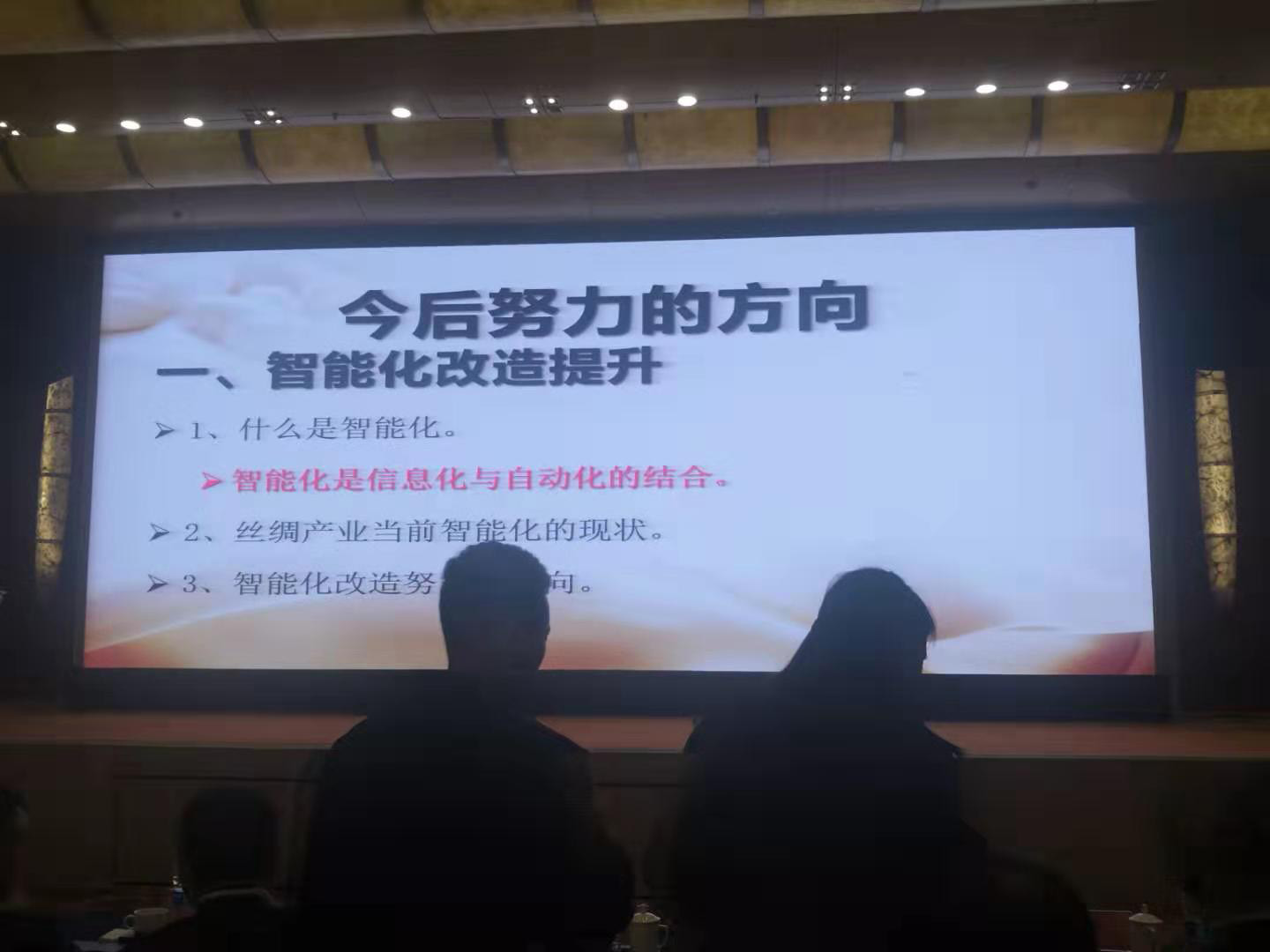 陳董發(fā)表了《絲綢之路 路在何方》的主題演講。他談了在行業(yè)當前面臨對內對外諸多壓力和困難中,大染坊將在智能化改造提升,改變營銷模式,打造熟悉絲綢生產(chǎn)工藝流程和文化、市場國際化運作的電商團隊、不斷推出新產(chǎn)品、差異化競爭,避免同質化如低成本競爭、專注發(fā)展自己熟悉的產(chǎn)業(yè)、大幅降低資產(chǎn)負債率,規(guī)避資金鏈斷裂風險等方面作為今后努力方向。