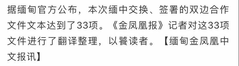 33項(xiàng)緬中雙邊合作項(xiàng)目(完整版)兩國(guó)元首共同見(jiàn)證