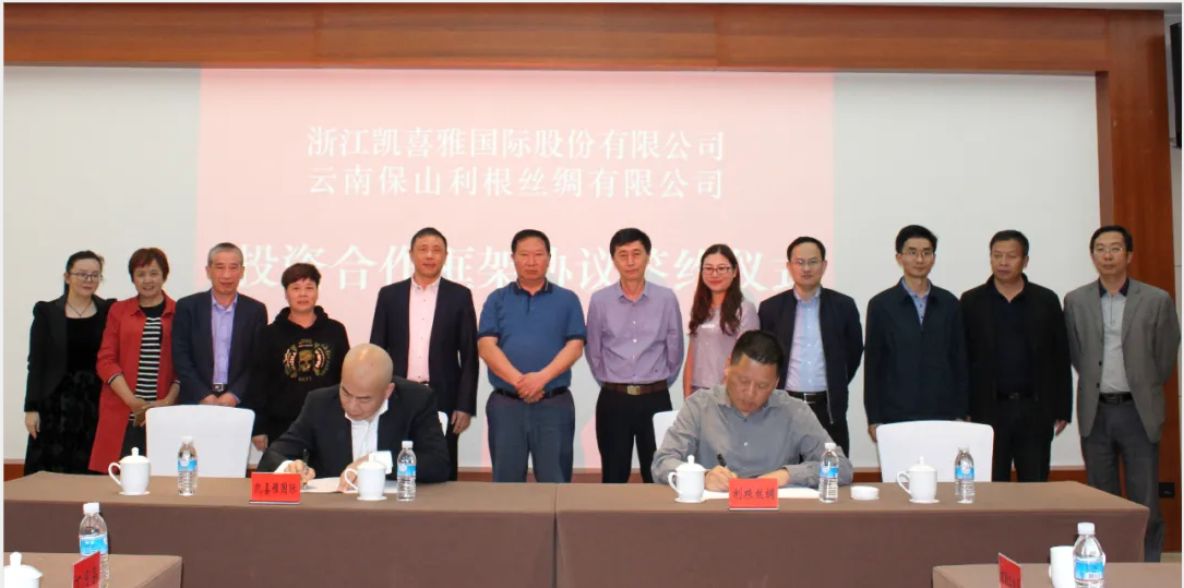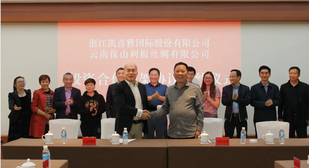 會(huì)上,張董代表凱喜雅集團(tuán)與保山利根絲綢簽署了投資合作框架協(xié)議,由雙方共同出資成立保山凱喜雅絲綢有限公司,凱喜雅集團(tuán)將成為其第一大股東。