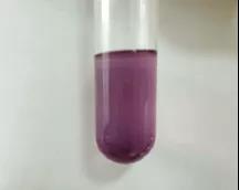 新版《蠶絲被》標準中,附錄C方法主要是往蠶絲絲綿中加入濃鹽酸(12moL/L,濃度為36%~38%)中,在室溫環(huán)境下溶解后形成淺黃色溶液,經過一定時間后,通過溶液顏色的變化來判定是否為增重絲綿。一般情況下,未增重的絲綿會變成紫色,增重過的絲綿則不變色。如圖1所示。