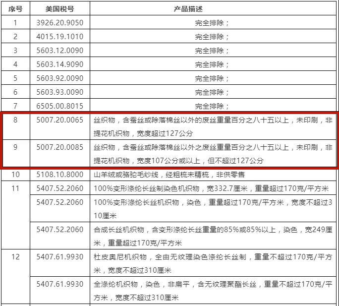 出口企業(yè)注意啦!2000億美元加征關(guān)稅產(chǎn)品排除清單(涉及絲綢商品稅號(hào))又有新修訂