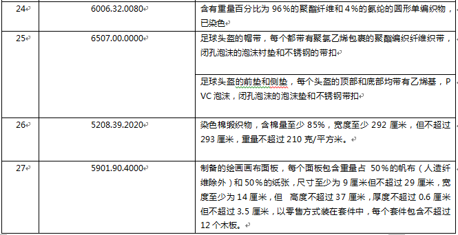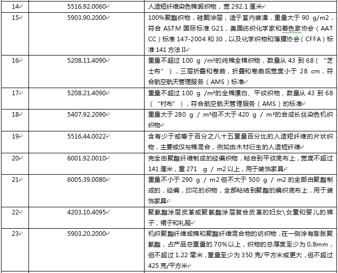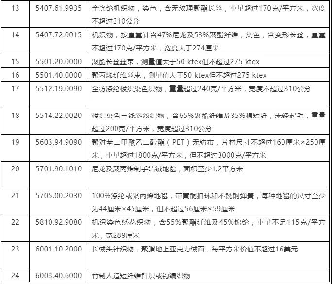 美國(guó)2000億美元關(guān)稅排除未獲延期紡織服裝產(chǎn)品一覽表