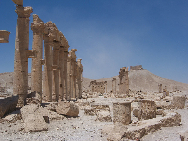 羅馬帝國時期,巴爾米拉快速崛起,公元2世紀(jì)達(dá)到鼎盛,成為羅馬帝國東部最大、最繁榮的城市。整個城市面積約為20平方公里,居民估計有15萬—20萬人。在水、糧食等資源非常有限的沙漠之中,能夠建造起這樣大規(guī)模的城市,可以說是一個奇跡。巴爾米拉城中遍布各類建筑物,包括雄偉的凱旋門、莊嚴(yán)的公民會堂、神圣的廟宇、寬闊的露天劇院、舒適的公共浴堂、雅致的貴族私宅等。那些經(jīng)歷了將近兩千年風(fēng)雨滄桑的文物古跡,直到今天依然令人驚嘆不已。