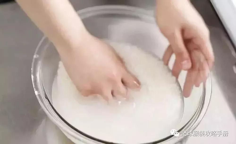 先是把真絲衣服泡在淘米水中約20分鐘,