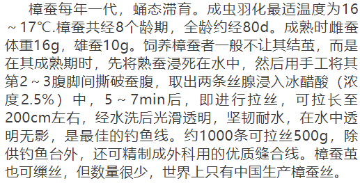又稱天蠶、楓蠶、漁絲蠶等。樟蠶主要食樟樹葉,絲質(zhì)較優(yōu),也食楓樹葉、柜柳葉、野薔薇、沙梨、蕃石榴、紫殼木及柯樹葉等,但絲質(zhì)較差。主要區(qū)是中國(guó)、越南、印度等國(guó),產(chǎn)量最多的是中國(guó)的海南島。