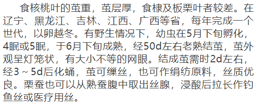 俗稱燈籠蠶,分布于中國(guó)、日本等地。主要食核桃、板栗、杏樹、楓楊、桷、櫪、樟、榆等樹葉。