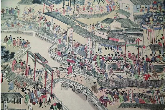 手工織出南京版的“清明上河圖”你見(jiàn)過(guò)《清明上河圖》,但是你見(jiàn)過(guò)“織”出來(lái)的“清明上河圖”嗎?在館內(nèi),現(xiàn)場(chǎng)展示了一幅“織”出來(lái)的南京版“清明上河圖”--《南都繁會(huì)圖》。該作品全圖長(zhǎng)達(dá)3.5米,共繪制有109個(gè)商家的招牌、幌子和匾額,以及侍衛(wèi)、戲子、漁夫、郵差、商人等1000多種不同的職業(yè)身份,反映了當(dāng)年秦淮河兩岸的繁盛景象。圖中所繪“南市街”“北市街”均屬南北走向街區(qū),即如今的雨花路、東西干長(zhǎng)巷,反映了南京市井商業(yè)貿(mào)易的繁榮。