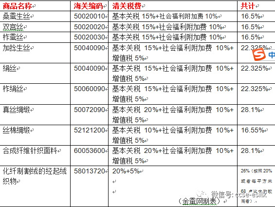 根據(jù)印度財(cái)政部長尼瑪拉·西塔拉曼周一在議會發(fā)表預(yù)算中的講話,為鼓勵本國繭絲綢產(chǎn)業(yè),進(jìn)口中國的絲類產(chǎn)品,關(guān)稅從10%將提高到15%,綢緞關(guān)稅從15%將提高到20%。調(diào)整后的稅費(fèi)具體如下: