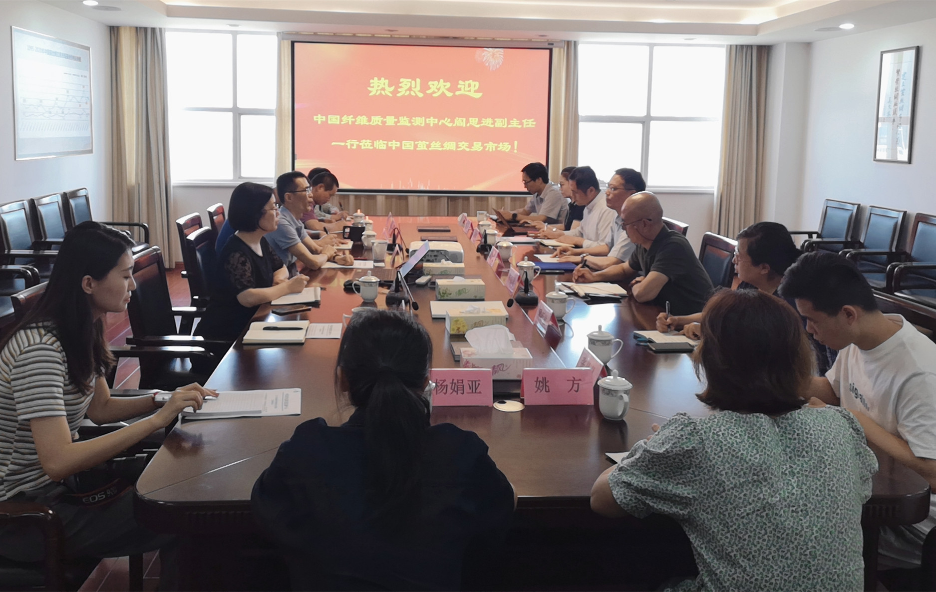 6月23日上午,中國(guó)纖維質(zhì)量監(jiān)測(cè)中心副主任閻思進(jìn)、監(jiān)測(cè)二處處長(zhǎng)畢海忠、監(jiān)測(cè)一處刁永輝,中國(guó)物品編碼中心吳新敏,湖州市質(zhì)量技術(shù)監(jiān)督檢測(cè)研究院院長(zhǎng)汪小東等一行蒞臨中國(guó)繭絲綢交易市場(chǎng)調(diào)研繭絲纖維質(zhì)量公正檢驗(yàn)工作及服務(wù)產(chǎn)業(yè)發(fā)展情況。市場(chǎng)總經(jīng)理劉卓明、副總經(jīng)理徐錚、楊桂霞,區(qū)域營(yíng)銷總監(jiān)陳錦明、信息總監(jiān)陳燕參加了座談。
