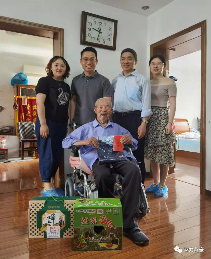適逢建黨100周年,結(jié)合推動(dòng)黨史學(xué)習(xí)教育走深走實(shí),蘇豪股份經(jīng)貿(mào)支部近日精心組織開(kāi)展“關(guān)愛(ài)抗戰(zhàn)老兵,傳承革命精神”志愿者活動(dòng)。支部8名黨員代表兵分兩路,帶著活動(dòng)慰問(wèn)品及慰問(wèn)金,一同看望南京地區(qū)的四位抗戰(zhàn)老兵,向他們表達(dá)深切的關(guān)愛(ài)和節(jié)日的祝福。