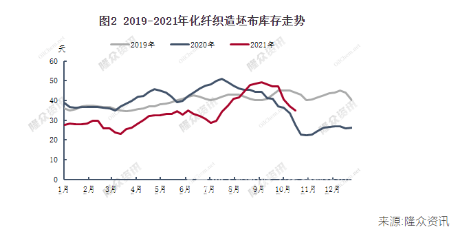 9月份華東地區(qū)限產(chǎn)以來(lái),下游織造坯布出現(xiàn)了明顯的下滑,截止到10月14日,終端織造坯布庫(kù)存平均水平為34.89天,多數(shù)生產(chǎn)基地限電限產(chǎn)下,手內(nèi)訂單多消耗廠內(nèi)庫(kù)存為主,因此常規(guī)款坯布庫(kù)存仍處于下滑通道,但在與下游工廠溝通的時(shí)候,個(gè)別前期低價(jià)庫(kù)存消化較快的工廠開(kāi)始產(chǎn)生強(qiáng)烈憂慮,雖然低價(jià)成本坯布在“金九銀十”、滌絲價(jià)格漲速較快、限產(chǎn)等因素支撐下消化較快,使其資金緊缺現(xiàn)象有一定緩解,所以這波上漲中也補(bǔ)一定原料,但是,以目前的開(kāi)工負(fù)荷來(lái)算,這波原料足以支撐2個(gè)月時(shí)間,再加上市場(chǎng)純滌面料漲幅較小,所以以目前原料價(jià)格核算成本并無(wú)利潤(rùn)可圖,故后面暫無(wú)繼續(xù)追漲考慮。綜上來(lái)看,近一個(gè)月限電限產(chǎn)使得下游織造坯布下滑,但利空影響也不容小覷,原料的高漲使得下游抵觸心態(tài)更加濃厚。