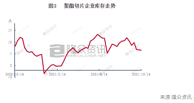 國(guó)慶假期后,聚酯切片企業(yè)周內(nèi)產(chǎn)銷持續(xù)放量,看漲情緒之下,下游工廠、貿(mào)易商紛紛補(bǔ)倉(cāng),但不少切片企業(yè)反饋,在盤(pán)面價(jià)差合適的情況下,期現(xiàn)貿(mào)易情緒較為高漲,尤其是切片超7300元/噸之后,下游切片紡工廠基本上處于觀望狀態(tài),在月中之后,產(chǎn)銷回歸清淡,換而言之,切片企業(yè)庫(kù)存近期雖然相對(duì)穩(wěn)定,但實(shí)際則是庫(kù)存轉(zhuǎn)移。目前,切片紡民用絲、工業(yè)絲、薄膜工廠原料庫(kù)存處于偏高位置,透支后期需求現(xiàn)象明顯。
