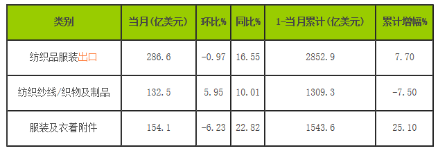 2021年11月我國紡織品服裝出口金額統(tǒng)計(jì)