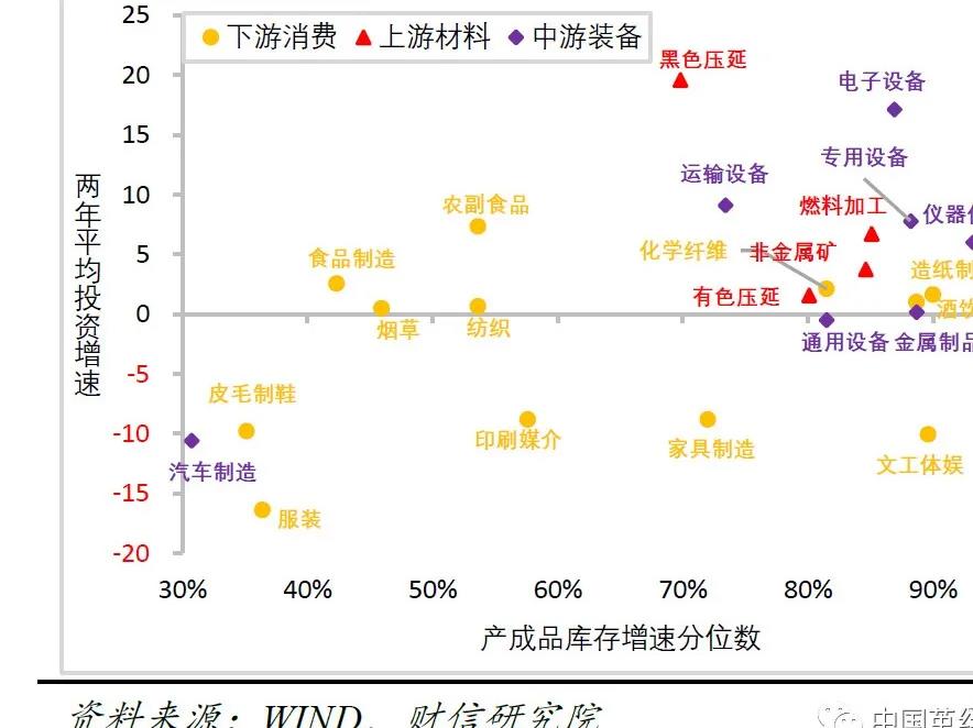圖表顯示:疫情發(fā)生以來,部分下游消費(fèi)品制造業(yè)如食品制造、服裝、紡織等行業(yè)投資增速和庫存增速持續(xù)低迷,企業(yè)投資意愿回落較為明顯。預(yù)計(jì)隨著消費(fèi)需求緩慢修復(fù)和PPI-CPI剪刀差高位回落,2022年下游消費(fèi)行業(yè)投資將在低基數(shù)效應(yīng)下迎來一定反彈。