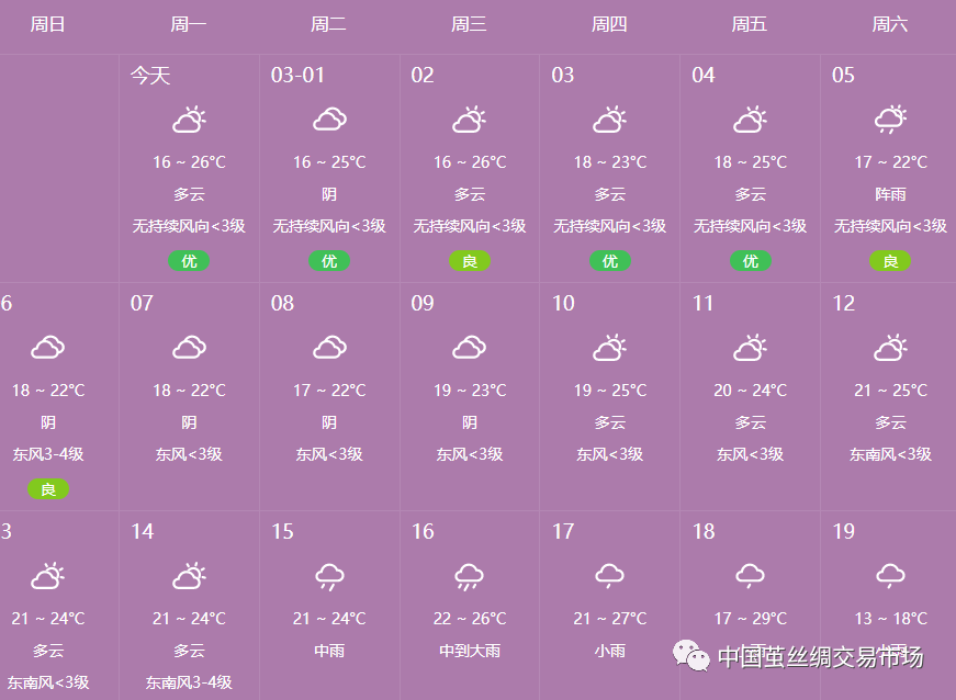 上周后期開始,全國大部分地區(qū)開始升溫。在廣西宜州,據(jù)向農(nóng)業(yè)部門了解,大部分桑樹有1-2厘米左右的發(fā)芽,受到前期凍害的桑園相對較少。