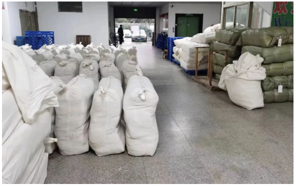 同時,隨著價格的下一臺階,普貨生絲價格和印度國內(nèi)價差逐步縮小,雖然印度國內(nèi)消費(fèi)一般,但近期在市場電子盤面價格附近仍有些陸續(xù)成交出口。圖為市場嘉興總部的打包現(xiàn)場。高品質(zhì)生絲的出口部分工廠反映也有些持續(xù)。整體上,近日各等級生絲走貨上較前幾日有所略放大,整體價格略下降。