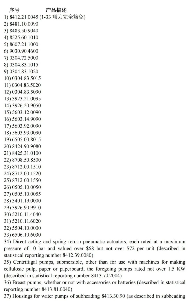 本次延長(zhǎng)加征關(guān)稅豁免期限的商品清單