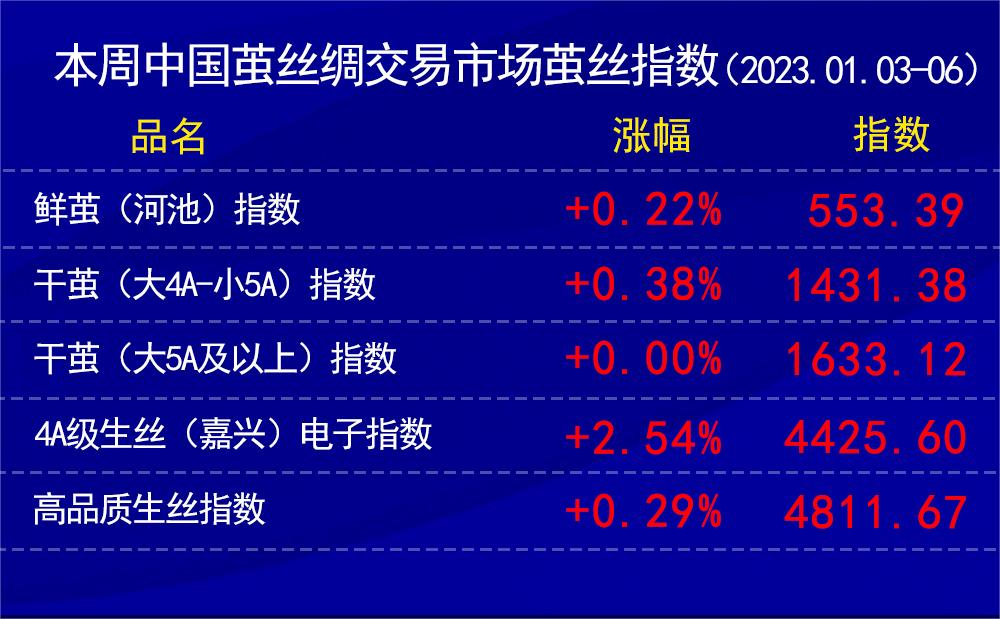 今日盤面收漲明顯 本周繭絲各指數(shù)均收陽(20230106)