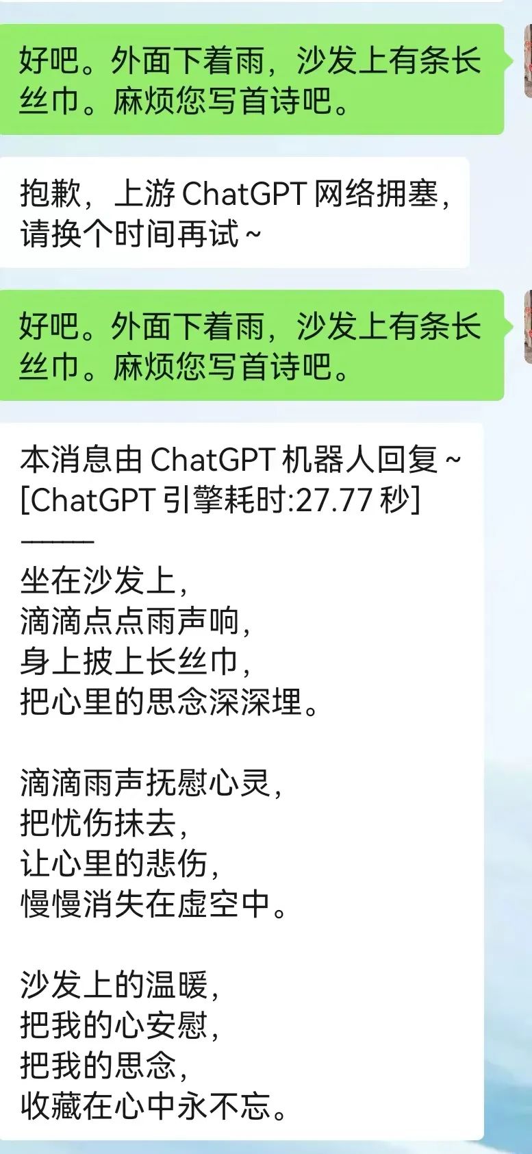 天陰沉沉,腦子熱騰騰。一個大膽的想法浮現(xiàn)——偷個懶,整篇稿子全部由小編與ChatGPT的對話記錄組成。因為太火,經(jīng)常處于網(wǎng)絡(luò)堵塞狀態(tài),問不了幾個問題。