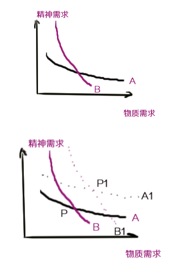 A,更加偏好物質(zhì)需求,而B,更加偏好精神需求。