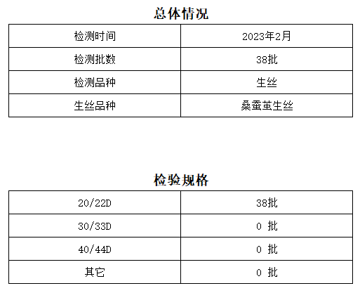 2023年2月中國繭絲綢交易市場湖州生絲超市公檢生絲質(zhì)量分析報告