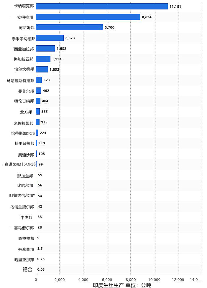 數(shù)據(jù)|2022財(cái)年印度各邦生絲產(chǎn)量(公噸)