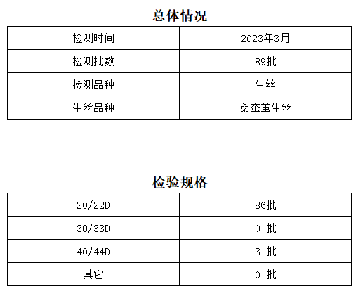 2023年3月中國繭絲綢交易市場湖州生絲超市公檢生絲質量分析報告