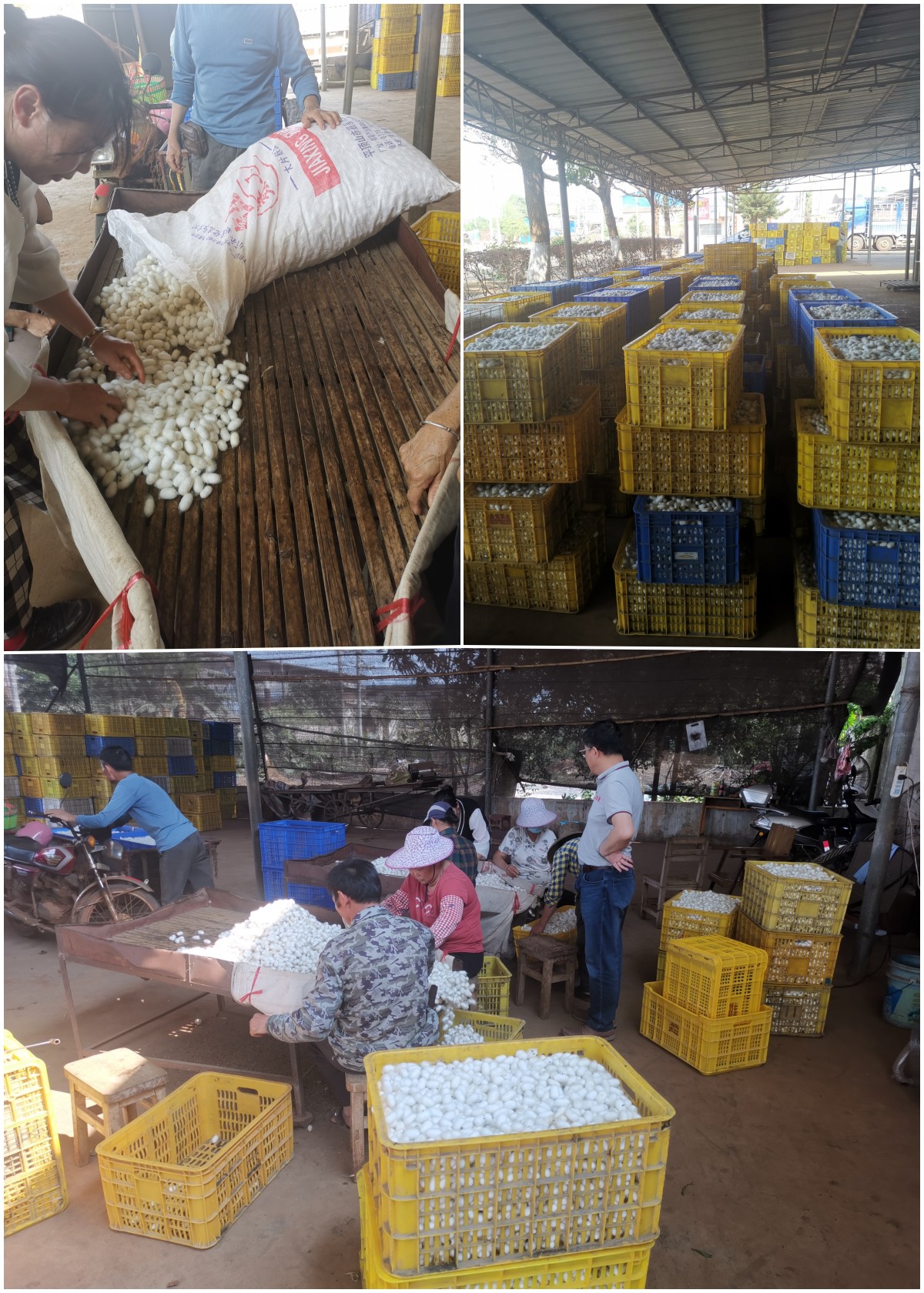 本周情況來看,廣東收購情況較上月末的剛開始上市期價格有所下調(diào),收購氛圍相對比前期理性些,前來收購的客商相對前周少些;廣西自最早一批發(fā)放蠶種的地區(qū)本周也開始逐步上市,收購很踴躍。本周收購來看,各地反映毛腳繭眾多,收購量少繭質(zhì)也不穩(wěn)定,收購繭本差異也較大。