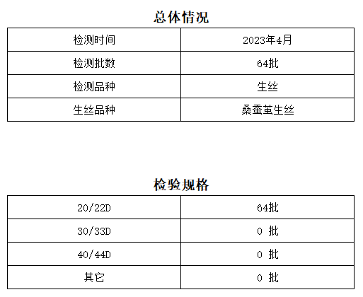 2023年4月中國繭絲綢交易市場(chǎng)湖州生絲超市公檢生絲質(zhì)量分析報(bào)告