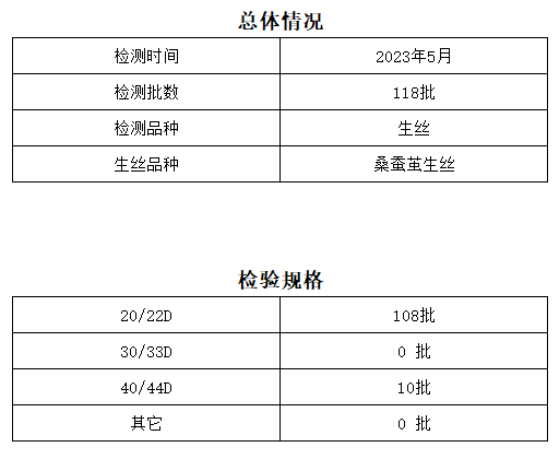 2023年5月中國(guó)繭絲綢交易市場(chǎng)湖州生絲超市公檢生絲質(zhì)量分析報(bào)告