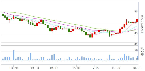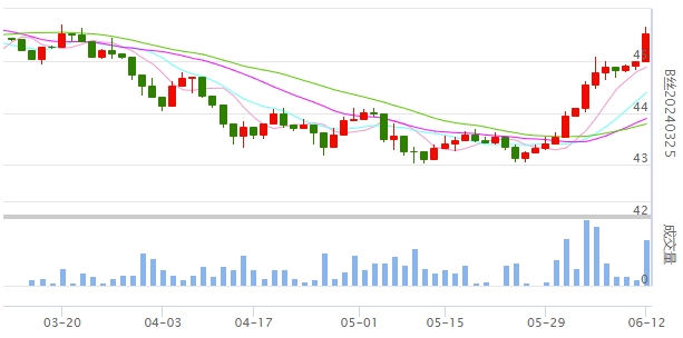 今日(2023年06月12日,周一)中國繭絲綢交易市場生絲指數(shù)上漲0.50%收于4443.19點(diǎn)。B絲(商檢4A級生絲):230625合約上漲0.21萬元報(bào)收于44.13萬元;230925合約上漲0.30萬元報(bào)收于44.46萬元;240325合約上漲0.54萬元報(bào)收于45.54萬元。