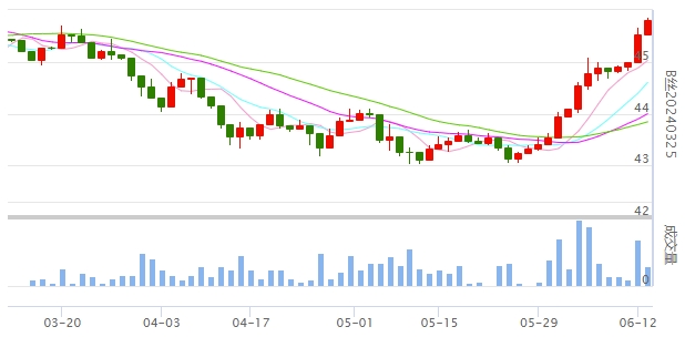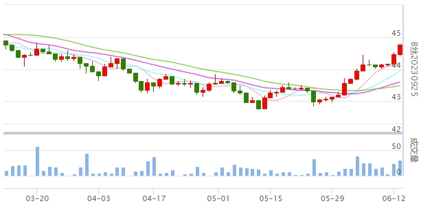 今日(2023年06月13日,周二)中國繭絲綢交易市場(chǎng)生絲指數(shù)上漲0.84%收于4480.37點(diǎn)。B絲(商檢4A級(jí)生絲):230625合約上漲0.33萬元報(bào)收于44.46萬元;230925合約上漲0.30萬元報(bào)收于44.76萬元;240325合約上漲0.27萬元報(bào)收于45.81萬元。