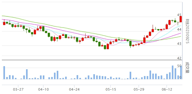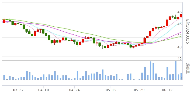 今日(2023年06月19日,周一)中國繭絲綢交易市場生絲指數(shù)上漲0.51%收于4501.16點(diǎn)。B絲(商檢4A級生絲):230625合約上漲0.15萬元報收于44.49萬元;230925合約上漲0.39萬元報收于45.03萬元;240325合約上漲0.24萬元報收于45.99萬元。