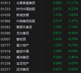 內(nèi)房股集體下挫,合景泰富跌超11%、時代中國跌8.2%,禹洲集團(0.26, 0.00, 0.00%)跌超7%,碧桂園(1.63, -0.02, -1.21%)、龍光集團(0.8, -0.01, -1.24%)、富力地產(chǎn)(1.24, -0.01, -0.80%)、遠(yuǎn)洋地產(chǎn)均跌超5%。消息面上,中國6月LPR下調(diào)10BP,1年期LPR降至3.55%,5年期降至4.2%。人民幣快速走弱,離岸、在岸人民幣兌美元盤中均跌破7.18。