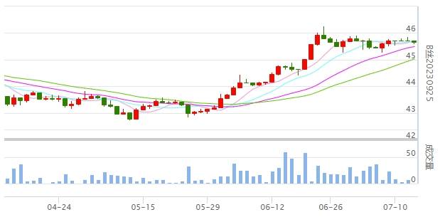 今日(2023年07月13日,周四)中國繭絲綢交易市場生絲指數(shù)下跌0.14%收于4591.54點。B絲(商檢4A級生絲):230725合約下跌0.09萬元報收于45.45萬元;230925合約下跌0.06萬元報收于45.66萬元;240325合約下跌0.06萬元報收于46.77萬元。