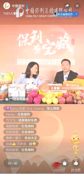 2021年10月22日,王音毓在京參加“保利有寶藏”活動,為忻城縣農(nóng)特產(chǎn)品直播帶貨